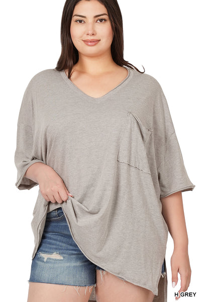 Oversized Raw Edge V Neck Tee